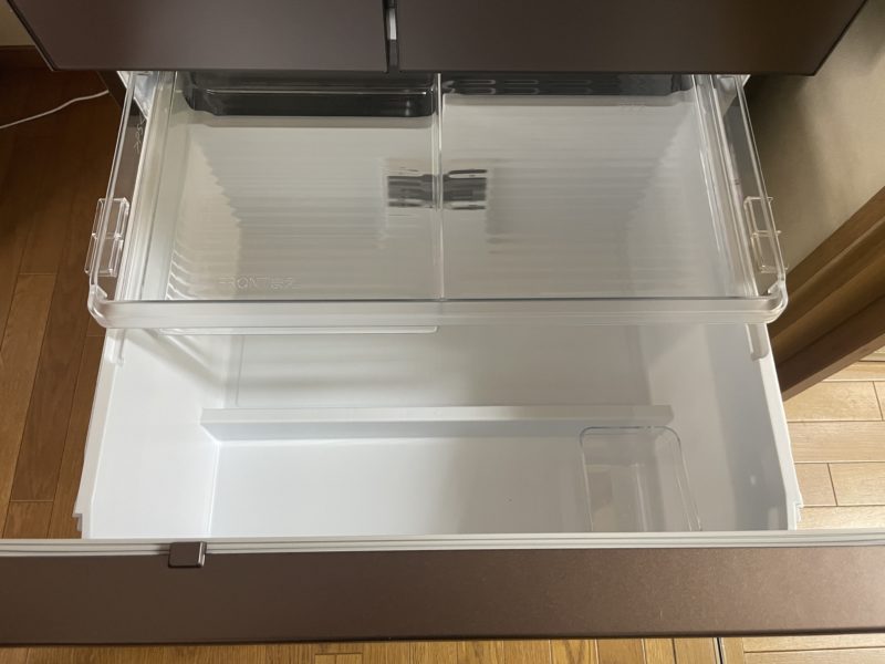 野菜室も狭い、、、ように思う。九条ネギのパックは斜めに入れてもネギの先が折れ曲がるのだけど、その曲がり方の影響範囲が以前より大きい。