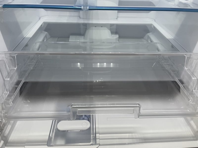 横幅が広くてフレンチドアの両側を拡げないと開くことができない。東芝はドアの片側オープンでチルド室にアクセス出来たので無駄な冷気を逃すことが無かった(たぶん)